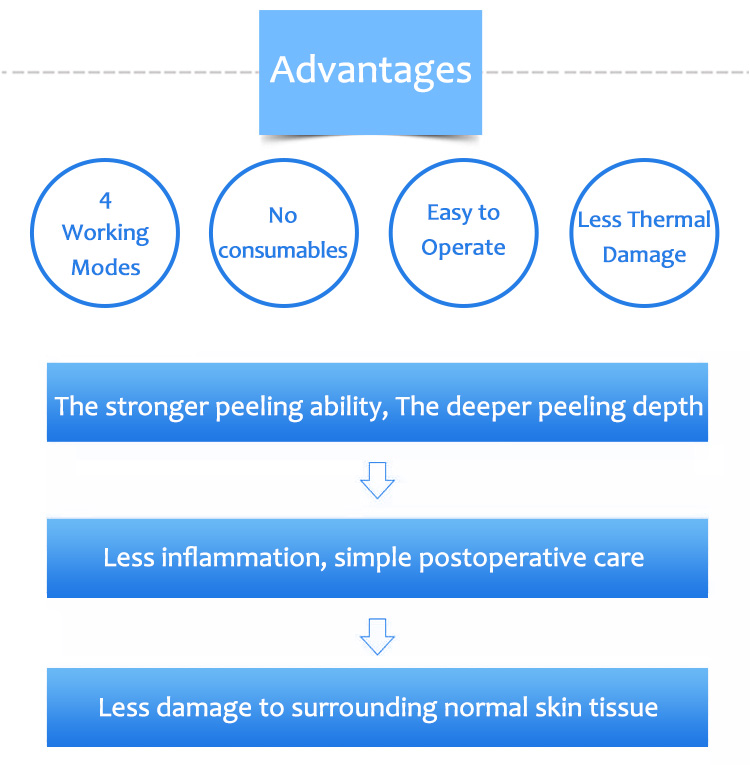 Use laser to scan and treat target tissue, heat can be transmitted from the superfical to the dermis of the skin.